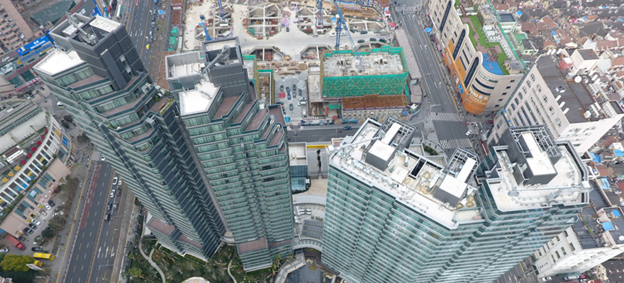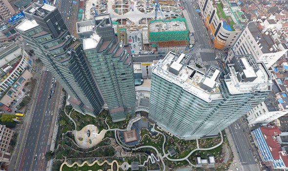 該項目毗鄰新天地與淮海路核心商業圈,由一棟27層辦公樓、一棟6層公寓酒店和沿街商業建筑組成,集5A甲級辦公空間和商業配套于一體。總建筑面積為13.8萬平方米。地下五層,基坑挖深約22.7米,基坑面積約為15610平方米。地鐵10號線從基坑北側紅線內穿過,東側緊鄰地鐵13號線。地下建筑面積為6.6萬平方米,地上建筑面積為7.3萬平方米。該項目獲評上海市文明工地。