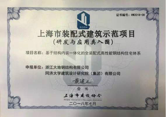 In June 2018, Longyuan Mingzhu S-SYSTEM residential product system passed the Shanghai assembly building demonstration project declaration and evaluation. Experts agreed that the product filled the gap in the field of integrated steel structure residential buildings in China.