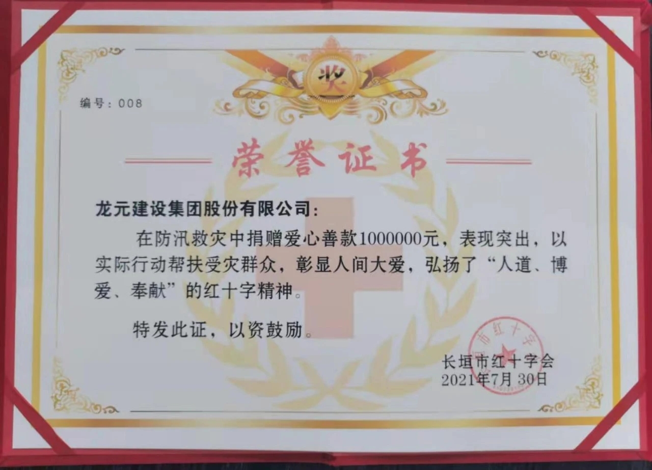 汛情發(fā)生后,龍?jiān)瘓F(tuán)一直心系災(zāi)區(qū),密切關(guān)注災(zāi)情情況。為幫助長(zhǎng)垣市災(zāi)后重建,盡快恢復(fù)生產(chǎn),龍?jiān)裨壬苹饹Q定向長(zhǎng)垣市紅十字會(huì)定向捐贈(zèng)100萬(wàn)元。
