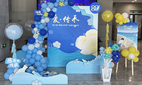 七年來(lái),“感恩與傳承”主題文化活動(dòng)成為了龍?jiān)髽I(yè)文化的重要載體。在第四屆“感恩與傳承”主題文化活動(dòng)上,集團(tuán)將“愛(ài)·傳承”定為主題,倡導(dǎo)龍?jiān)顺迅卸髦模瑢⒂霉嫘袆?dòng)回饋社會(huì)大眾,傳承大愛(ài)。自此開(kāi)始,“愛(ài)·傳承”的主題也一直延用了下來(lái),今年主背景板設(shè)計(jì)了“海上花開(kāi)”的形象,也寓意著龍?jiān)耙宦废蛏疲幌ⅰ薄?/span>