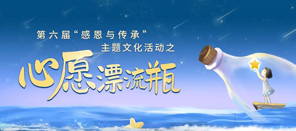 “心愿漂流瓶”是龍?jiān)裨壬苹鸢l(fā)起的公益項(xiàng)目,也是本屆“感恩與傳承”主題文化活動(dòng)的重要組成部分。7月14日,龍?jiān)裨壬苹鹫桨l(fā)布“心愿漂流瓶”的征集活動(dòng)。