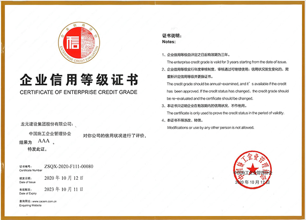 此前,龍元建設(shè)集團(tuán)曾多次獲得工程建設(shè)企業(yè)社會信用評價AAA級企業(yè)、浙江省AAA級“守合同重信用”企業(yè)等榮譽。此次獲評2022年度建筑業(yè)AAA級信用企業(yè),是對公司實力和信譽的再度認(rèn)可。