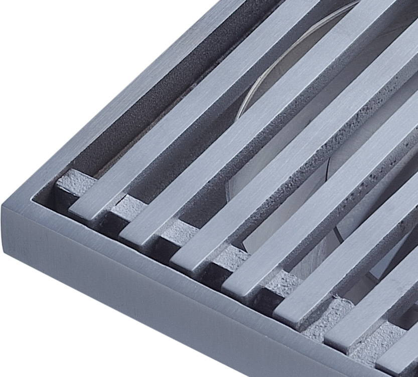 阿發地漏表面經純手工拉絲處理,質感十足,強韌有型;亞光處理,光澤柔和,氣質高雅,更能避免鏡面材質反射的光污染