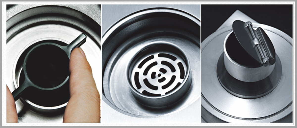 不銹鋼地漏內部設計專用拆洗開關,操作簡單,輕巧靈活,可重復拆洗,以防地漏污濁或堵塞,清潔方便