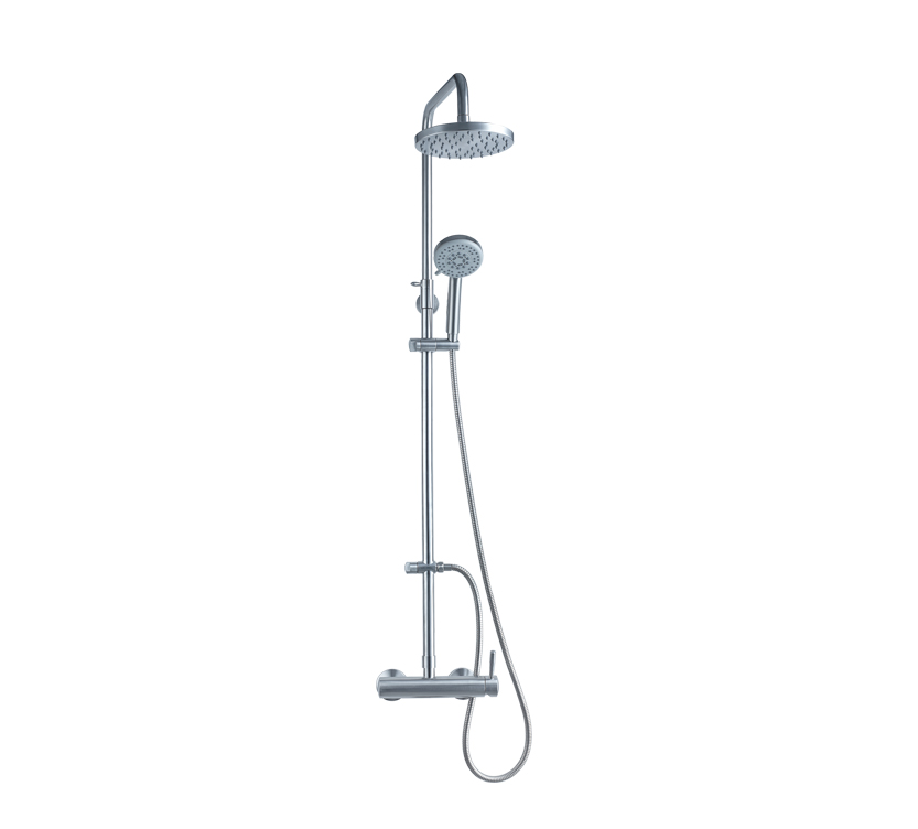 沐浴柱由不銹鋼整體壓鑄成型,簡潔時尚、結實耐用。上下呼應的斜角設計,讓您的浴室更具美感,又避免了金屬銳角對人體的意外碰撞,,彰顯人性關懷。