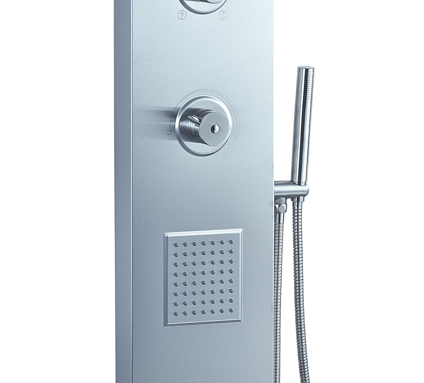 沐浴柱由不銹鋼整體壓鑄成型,簡(jiǎn)潔時(shí)尚、結(jié)實(shí)耐用。上下呼應(yīng)的斜角設(shè)計(jì),讓您的浴室更具美感,又避免了金屬銳角對(duì)人體的意外碰撞,,彰顯人性關(guān)懷。