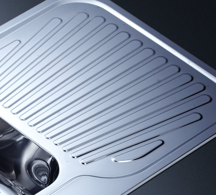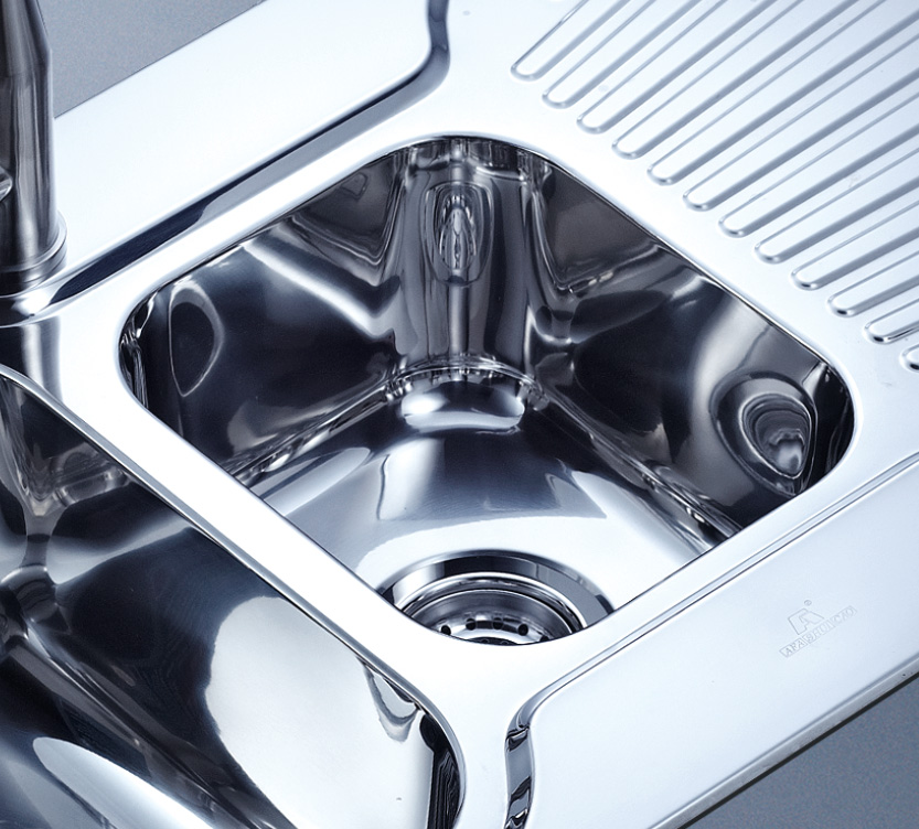 阿發水槽立邊采用國際先進的10-25°小R角一次成型拉伸技術,更具立體感與時尚潮流,亦能充分擴展水槽利用空間;一次成型拉伸技術,杜絕了焊接工藝易產生的水槽生銹,脫焊事故,充分保障水槽50年以上的使用壽命