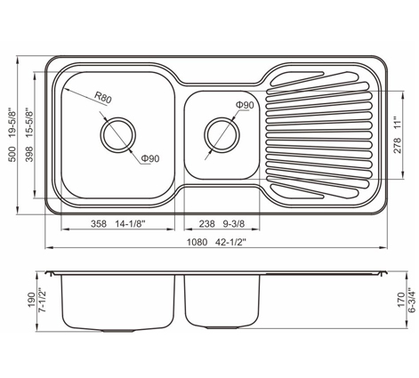 槽底采用斜面壓痕,四輻導流槽設計,與平面壓痕和無痕水槽相比,導水更為流暢,下水更迅速,能有效防止積水,消除沉淀物