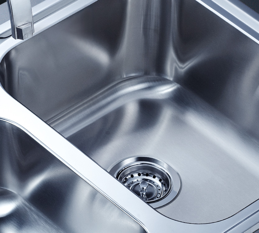 水槽四邊條采用一次成型的折彎加強筋工藝,雙倍堅固,承重力更強,解決了普通焊接工藝容易出現的凹點、脫焊、易割手等問題。專業配置的密封條和固定夾,安裝平整度高,不滲水,不松動