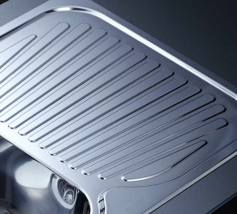 阿發(fā)水槽立邊采用國際先進(jìn)的10-25°小R角一次成型拉伸技術(shù),更具立體感與時(shí)尚潮流,亦能充分?jǐn)U展水槽利用空間;一次成型拉伸技術(shù),杜絕了焊接工藝易產(chǎn)生的水槽生銹,脫焊事故,充分保障水槽50年以上的使用壽命