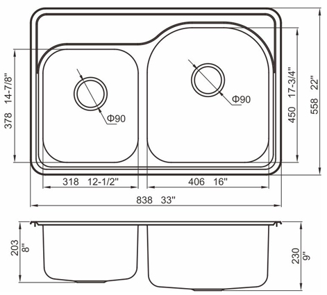 阿發水槽立邊采用國際先進的10-25°小R角一次成型拉伸技術,更具立體感與時尚潮流,亦能充分擴展水槽利用空間;一次成型拉伸技術,杜絕了焊接工藝易產生的水槽生銹,脫焊事故,充分保障水槽50年以上的使用壽命