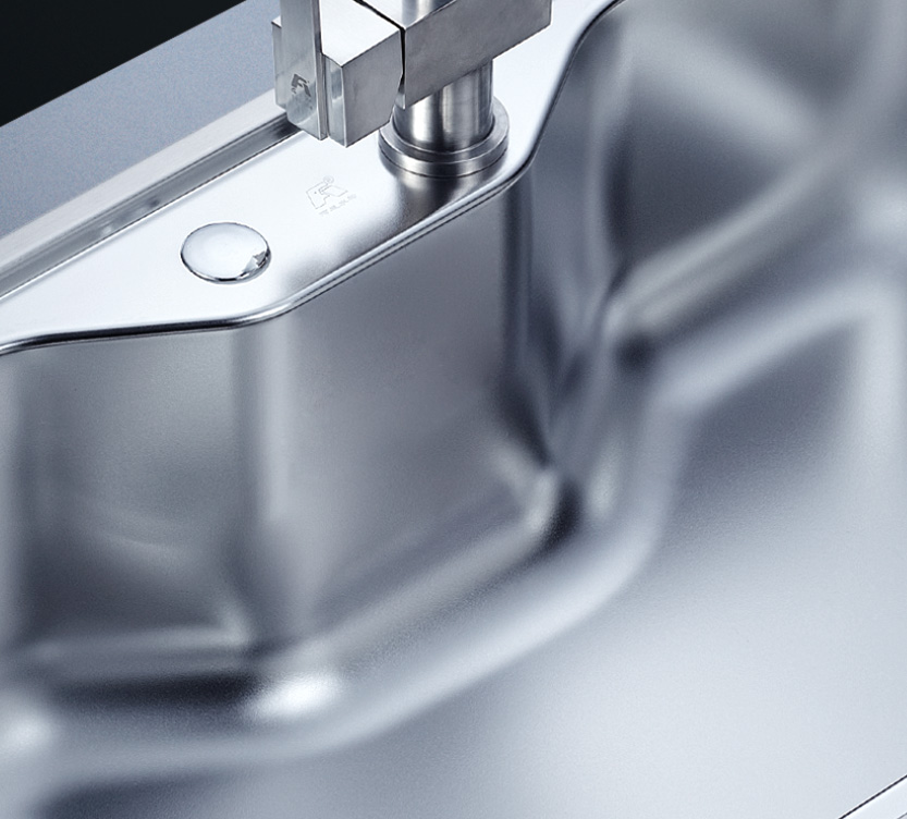阿發(fā)水槽立邊采用國際先進的10-25°小R角一次成型拉伸技術(shù),更具立體感與時尚潮流,亦能充分?jǐn)U展水槽利用空間;一次成型拉伸技術(shù),杜絕了焊接工藝易產(chǎn)生的水槽生銹,脫焊事故,充分保障水槽50年以上的使用壽命