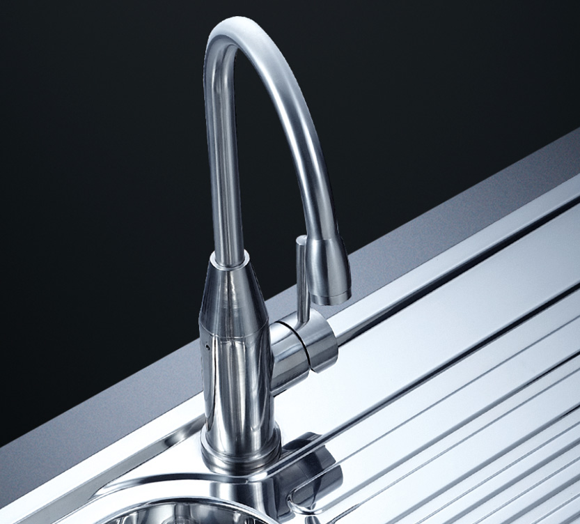完美的水槽加固設計,有效防止溢水,水槽槽體一次成形的凹型設計,免除流水滲漏損壞櫥柜,完美凹型水槽,打造優雅廚房