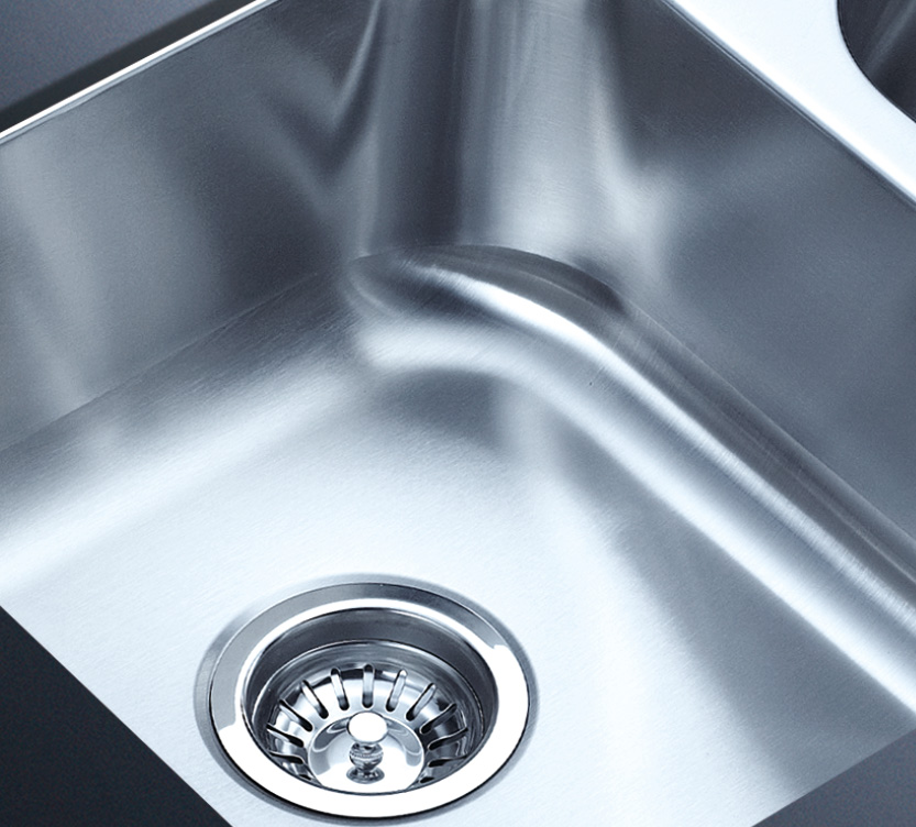 阿發水槽整體經拉絲處理,質地更加光滑,視覺更加柔和。能有效抵擋異物撞擊,刮傷及磨損,防止油污沾染,常用常新;柔和的光澤令水槽平添高雅氣質,更能避免鏡面材質反射的光污染