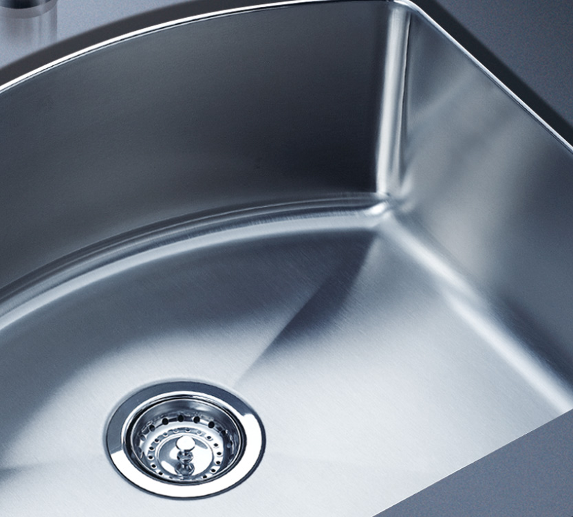 阿發水槽整體經拉絲處理,質地更加光滑,視覺更加柔和。能有效抵擋異物撞擊,刮傷及磨損,防止油污沾染,常用常新;柔和的光澤令水槽平添高雅氣質,更能避免鏡面材質反射的光污染