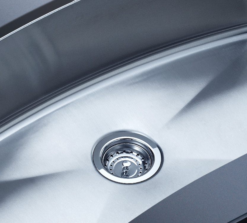 阿發水槽整體經拉絲處理,質地更加光滑,視覺更加柔和。能有效抵擋異物撞擊,刮傷及磨損,防止油污沾染,常用常新;柔和的光澤令水槽平添高雅氣質,更能避免鏡面材質反射的光污染