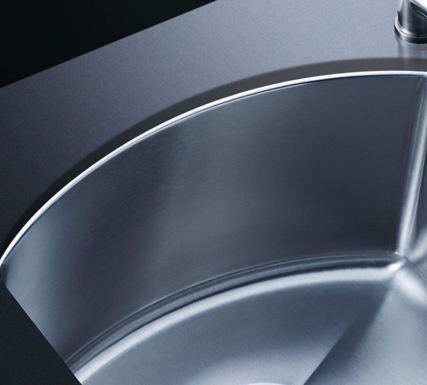 阿發(fā)水槽立邊采用國際先進的10-25°小R角一次成型拉伸技術,更具立體感與時尚潮流,亦能充分擴展水槽利用空間;一次成型拉伸技術,杜絕了焊接工藝易產(chǎn)生的水槽生銹,脫焊事故,充分保障水槽50年以上的使用壽命