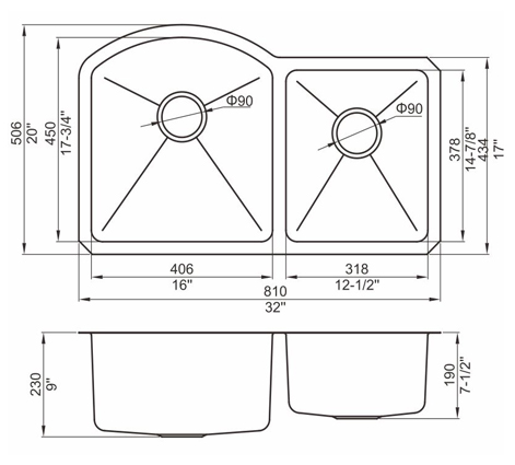 槽底采用斜面壓痕,四輻導流槽設計,與平面壓痕和無痕水槽相比,導水更為流暢,下水更迅速,能有效防止積水,消除沉淀物