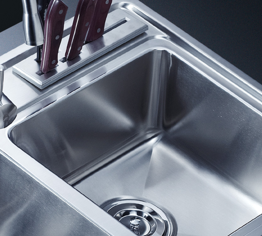 阿發水槽立邊采用國際先進的10-25°小R角一次成型拉伸技術,更具立體感與時尚潮流,亦能充分擴展水槽利用空間;一次成型拉伸技術,杜絕了焊接工藝易產生的水槽生銹,脫焊事故,充分保障水槽50年以上的使用壽命