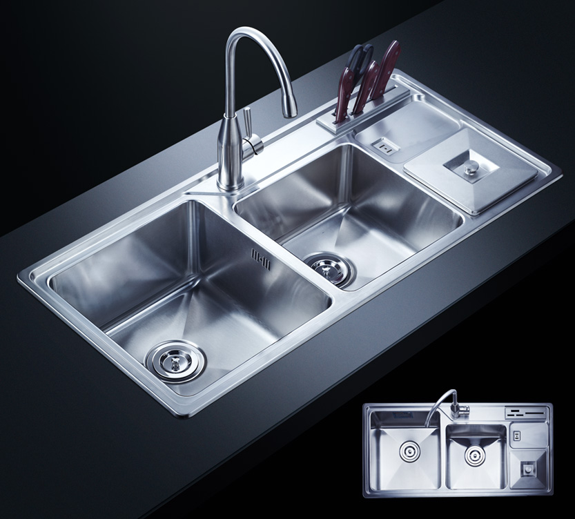 水槽四邊條采用一次成型的折彎加強筋工藝,雙倍堅固,承重力更強,解決了普通焊接工藝容易出現的凹點、脫焊、易割手等問題。專業配置的密封條和固定夾,安裝平整度高,不滲水,不松動
