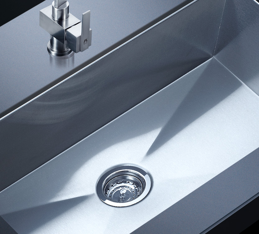 阿發(fā)水槽整體經(jīng)拉絲處理,質(zhì)地更加光滑,視覺更加柔和。能有效抵擋異物撞擊,刮傷及磨損,防止油污沾染,常用常新;柔和的光澤令水槽平添高雅氣質(zhì),更能避免鏡面材質(zhì)反射的光污染