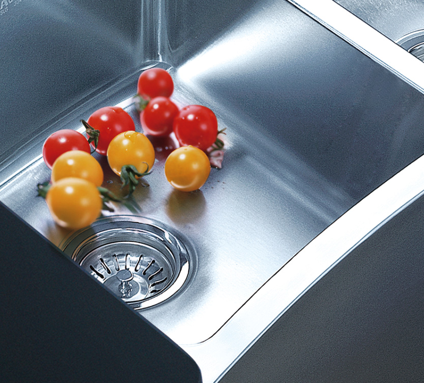 阿發(fā)水槽整體經(jīng)拉絲處理,質(zhì)地更加光滑,視覺更加柔和。能有效抵擋異物撞擊,刮傷及磨損,防止油污沾染,常用常新;柔和的光澤令水槽平添高雅氣質(zhì),更能避免鏡面材質(zhì)反射的光污染